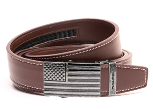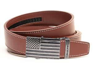 Feeling Patriotic? This is the belt for you! Filled with the American Dream this belt is a great addition to anyones wardrobe. Engraved with the American Flag on the face of a Prestige Silver Buckle, it makes any outfit look better. Being the newest member to the Railtek family this Belt is going FAST!