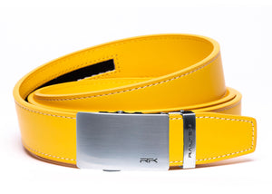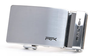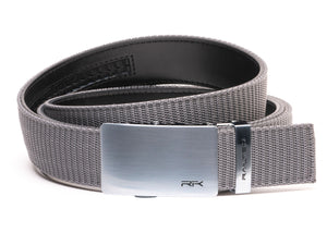 Simple, Bold, Comfortable, and Sleek. Our Brushed Steel will leave you feeling like the 'Man-of-Steel' himself. We call it the prestige Brushed Steel for a reason. This belt will help influence your wardrobe and add the finishing touch you need for your look. The brushed-steel, ratchet belt not only slides on smoothly, but adjusts to any waist size. Brushed Steel is a timeless look and works for any look... business casual or formal. You can wear this slider brushed steel belt at the golf course or just around the house. There's nothing dull polished or just another satin finished metal about this belt.